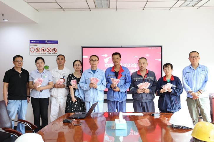 随后,,,,,工会主席包峰和工会副主席王永强司理为子女金榜题名的员工揭晓了奖励金并合影留念。。。。。。。。