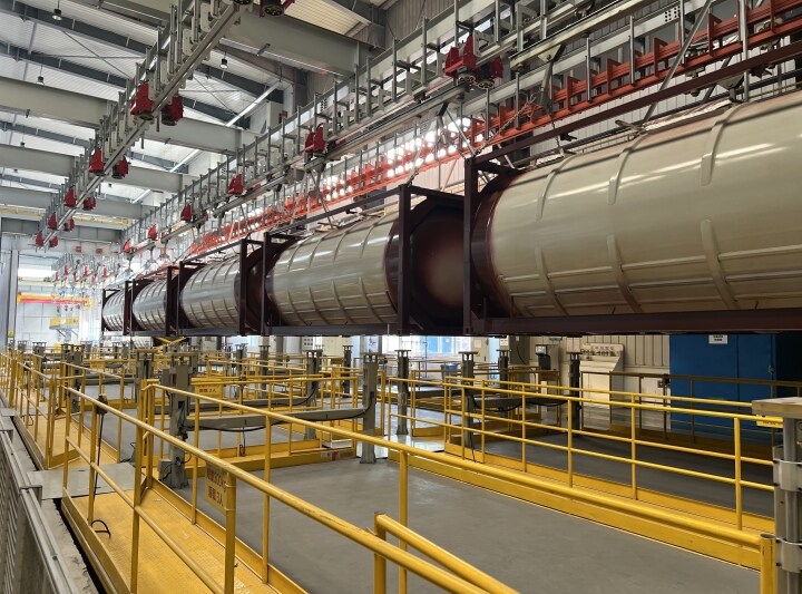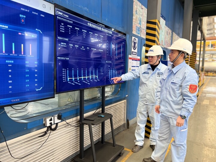 bet9九州酷游标罐车间内,,,,,,,,生产执行系统(MES)的使用,,,,,,,,让管理者越发精准把控生产进度节点;;;;;;;;去年投入运营的喷粉车间,,,,,,,,较以往用工镌汰了60%以上、生产效率提高了40%以上,,,,,,,,事情职员通过中控室的数字大屏,,,,,,,,可随时相识车间生产运营、产量进度以及能耗管控等情形……